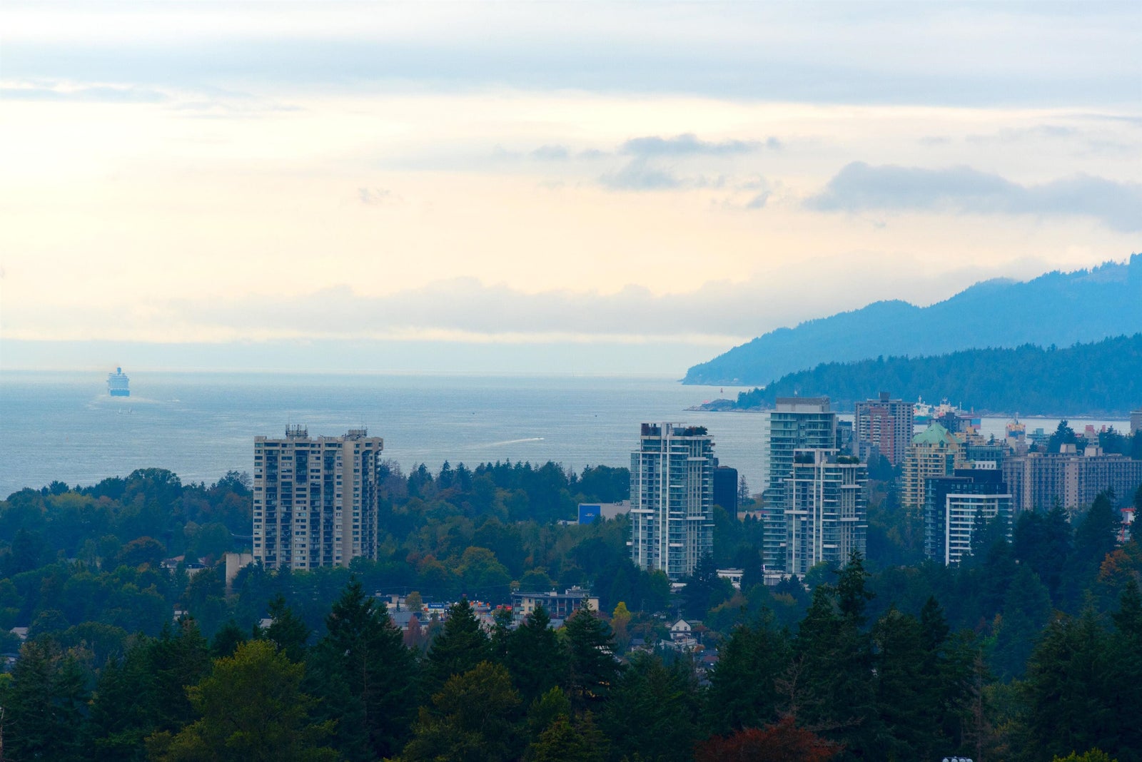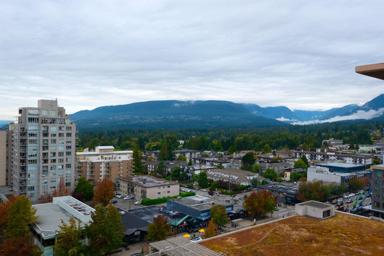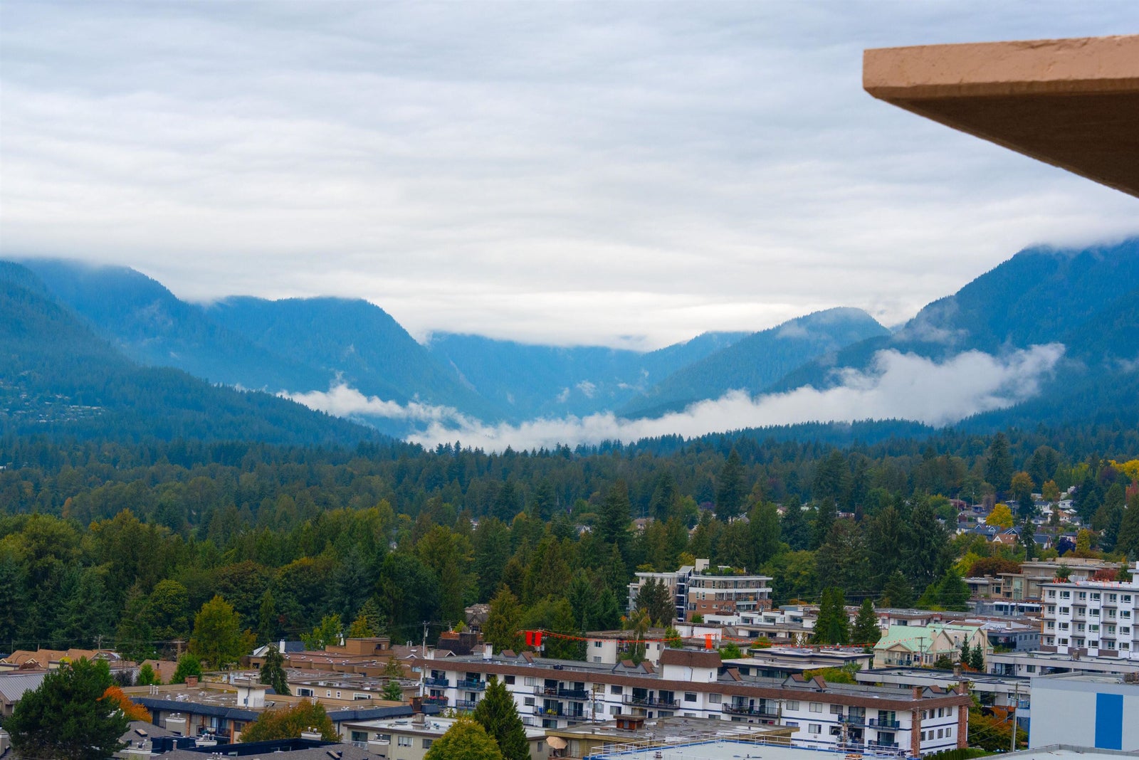 VIEWS to the South, West & North (180 degrees - STUNNING!). This fully renovated SOUTHWEST-facing sub-PENTHOUSE in a concrete, well-maintained RAINSCREENED building in the heart of Central Lonsdale offers sweeping VIEWS of the city, water & mountains. Almost 1,000 sq ft and boasting 2 bedrooms, 2 bathrooms & in-suite laundry. This home is beautifully painted, meticulously cared for, and move-in ready. The kitchen features Caesarstone counters & stainless steel appliances, while expansive west-facing windows flood the space with natural light. A semi-covered deck extends your living outdoors year-round. Steps to a park, brand new rec centre, hospital, shops, restaurants & cafes. 1 parking & 1 locker. OPEN HOUSE SUNDAY, OCTOBER 5 (2-4 PM).